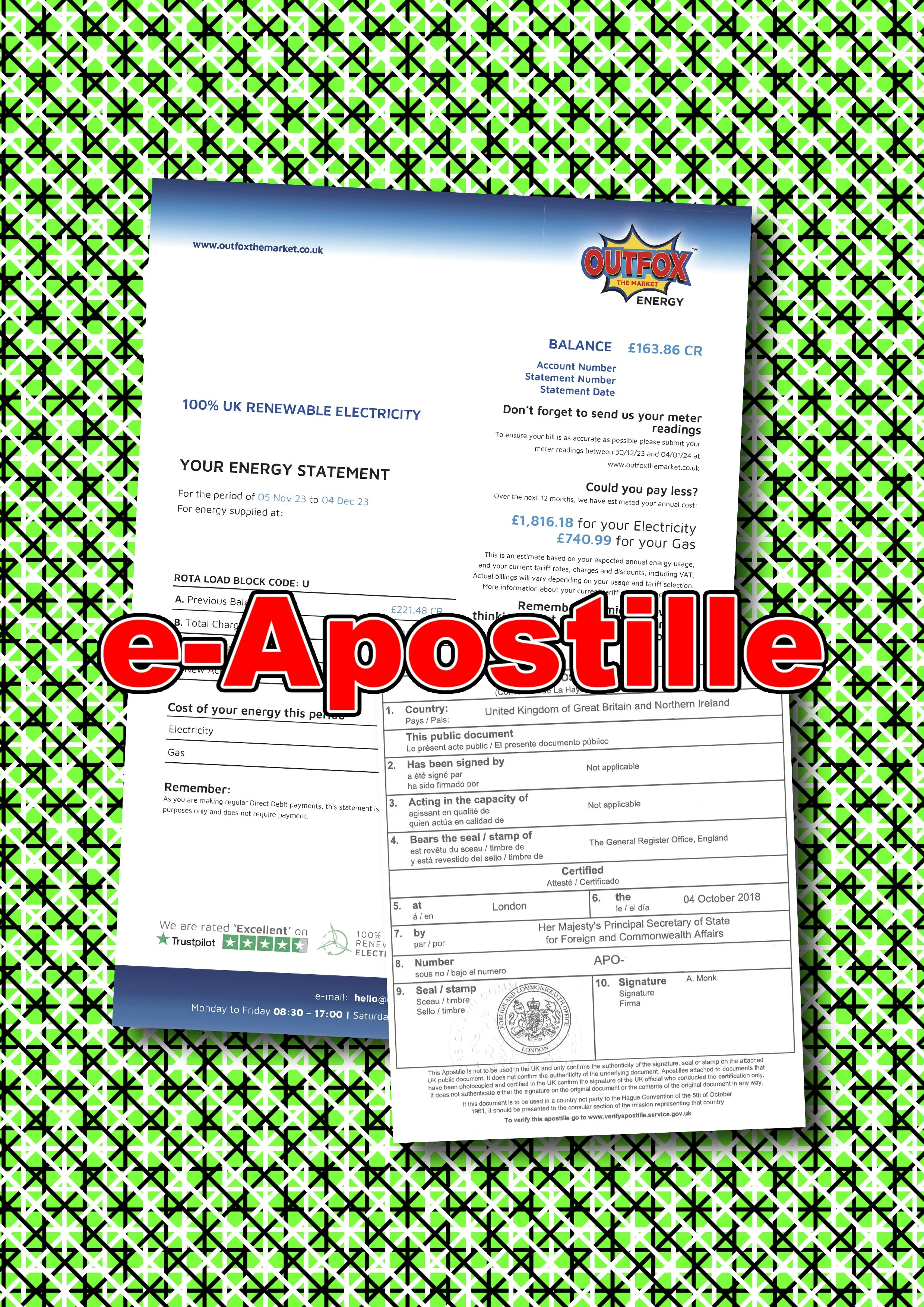 Get an FCDO issued, digital only, e-Apostille, with AES/QES digital solicitor certification on your Business Utility Bill